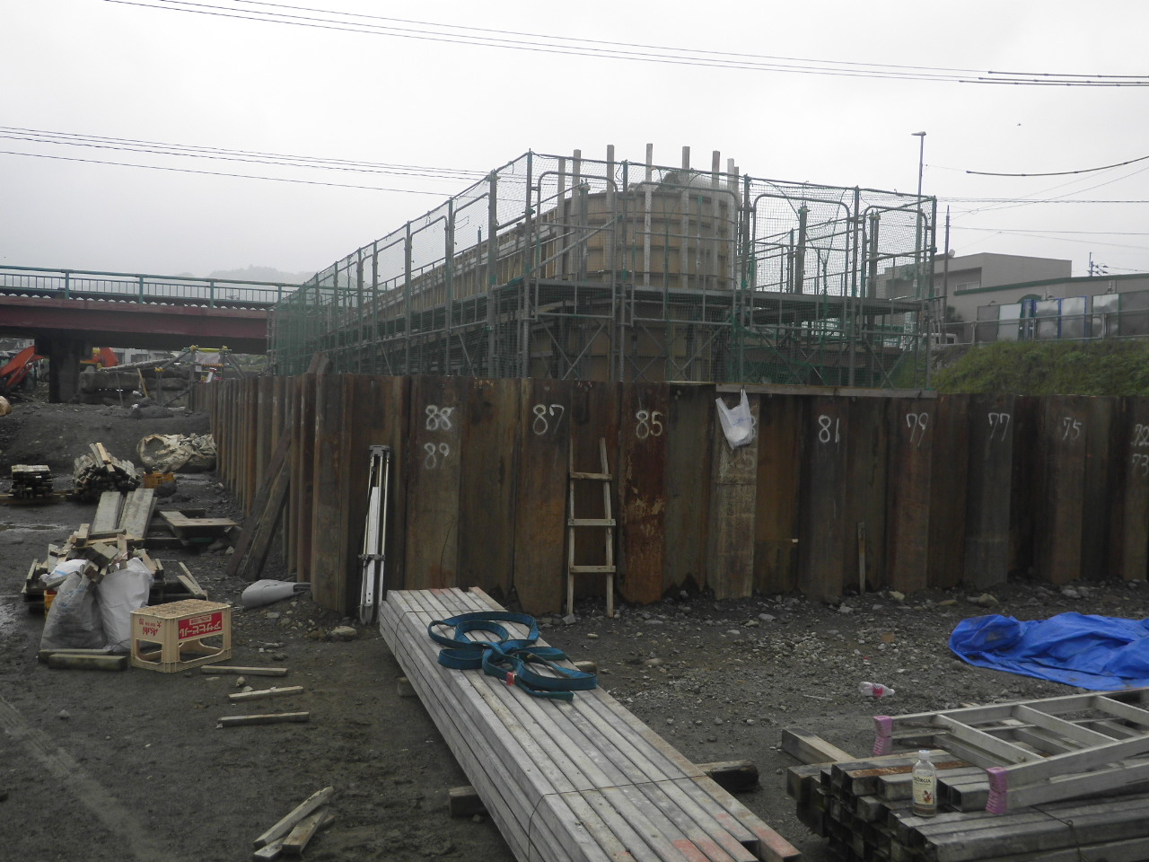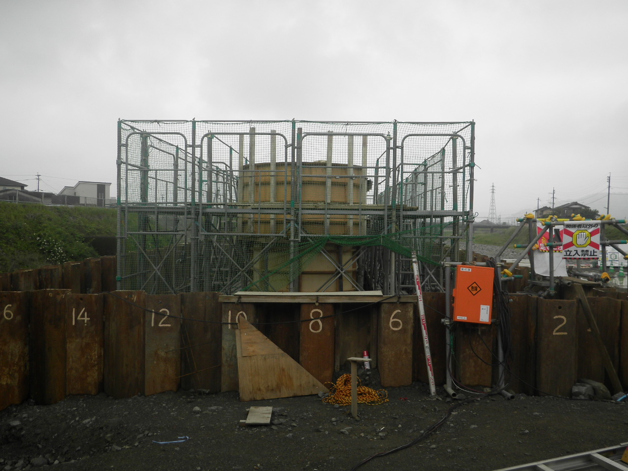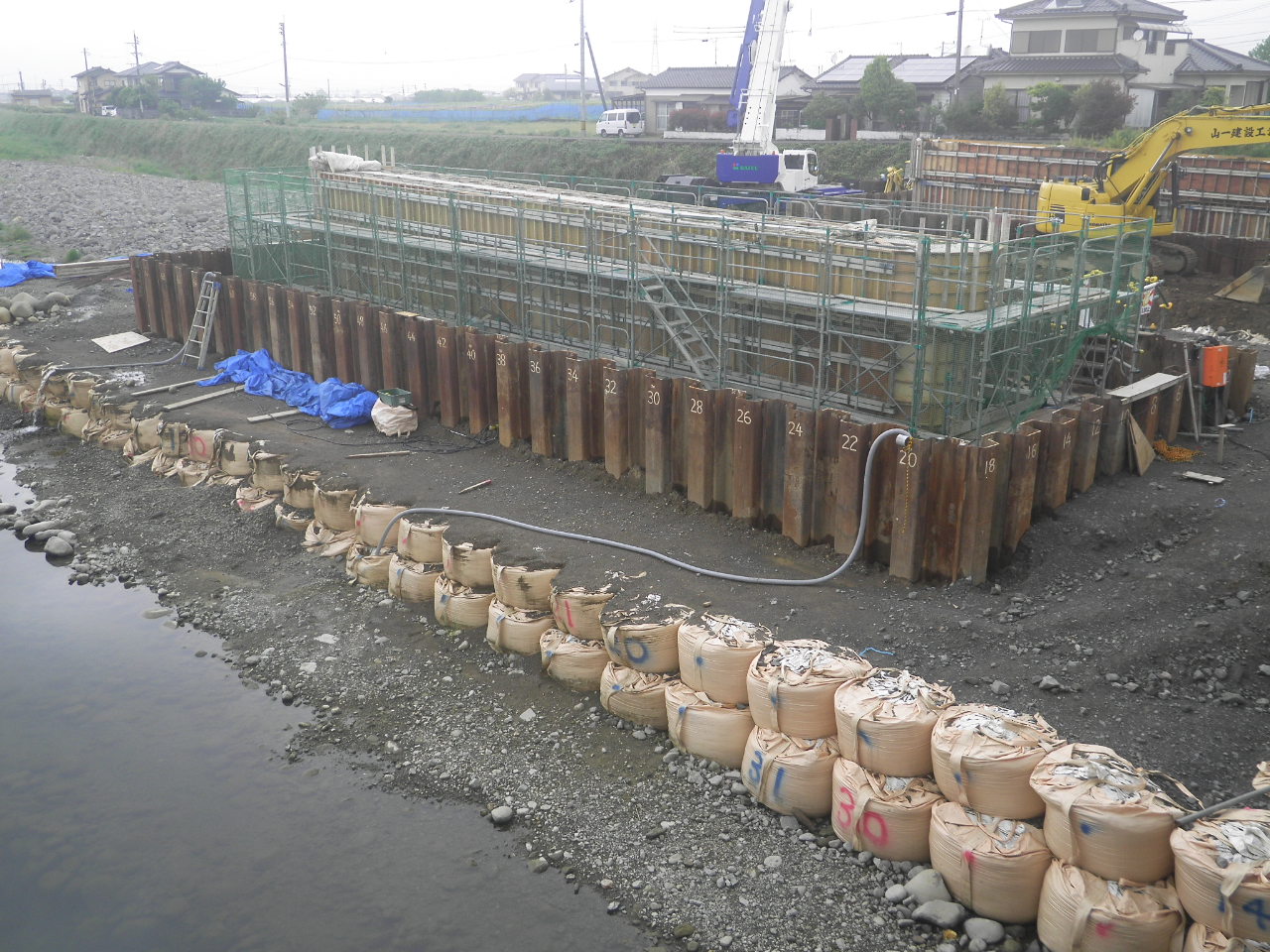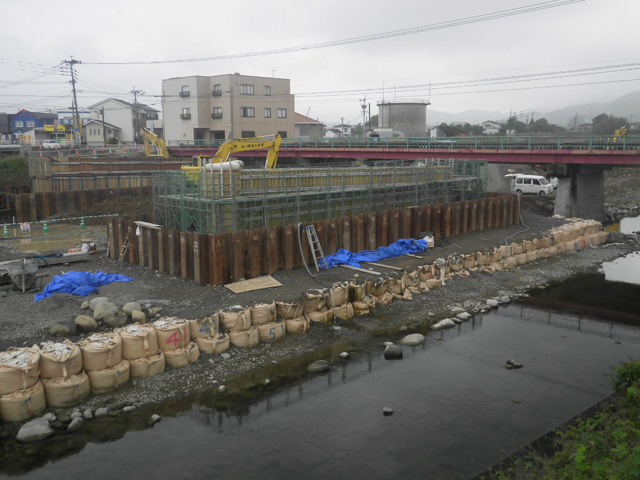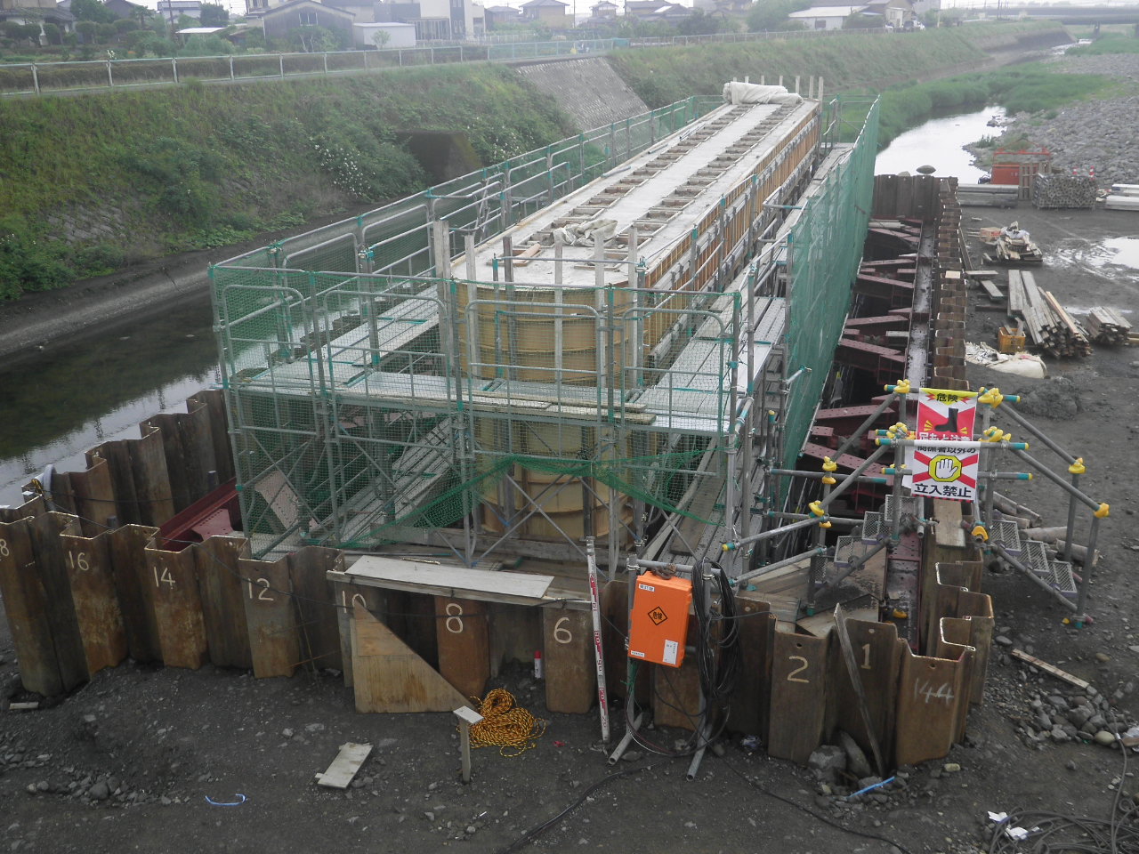 県道八女香春線今川橋橋梁下部工(P1)工事 施工中
